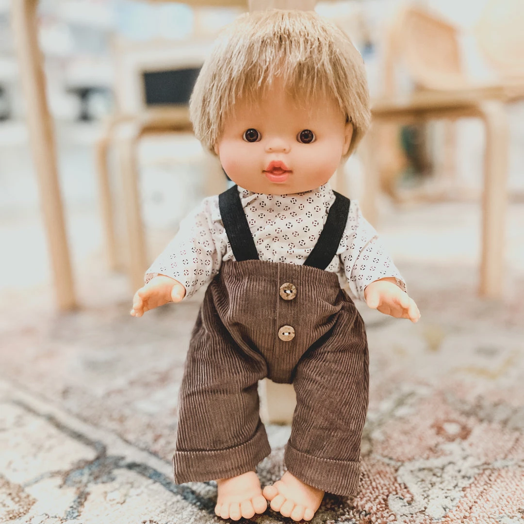 The sweetest baby boy minikane doll. Minikane Dolls are made from eco-friendly and non-toxic vinyl. They are subtly scented with a vanilla scent and are small enough for your little one to hold. Your little one can dress them up with their own baby clothes or choose from the Minikane outfits.Â