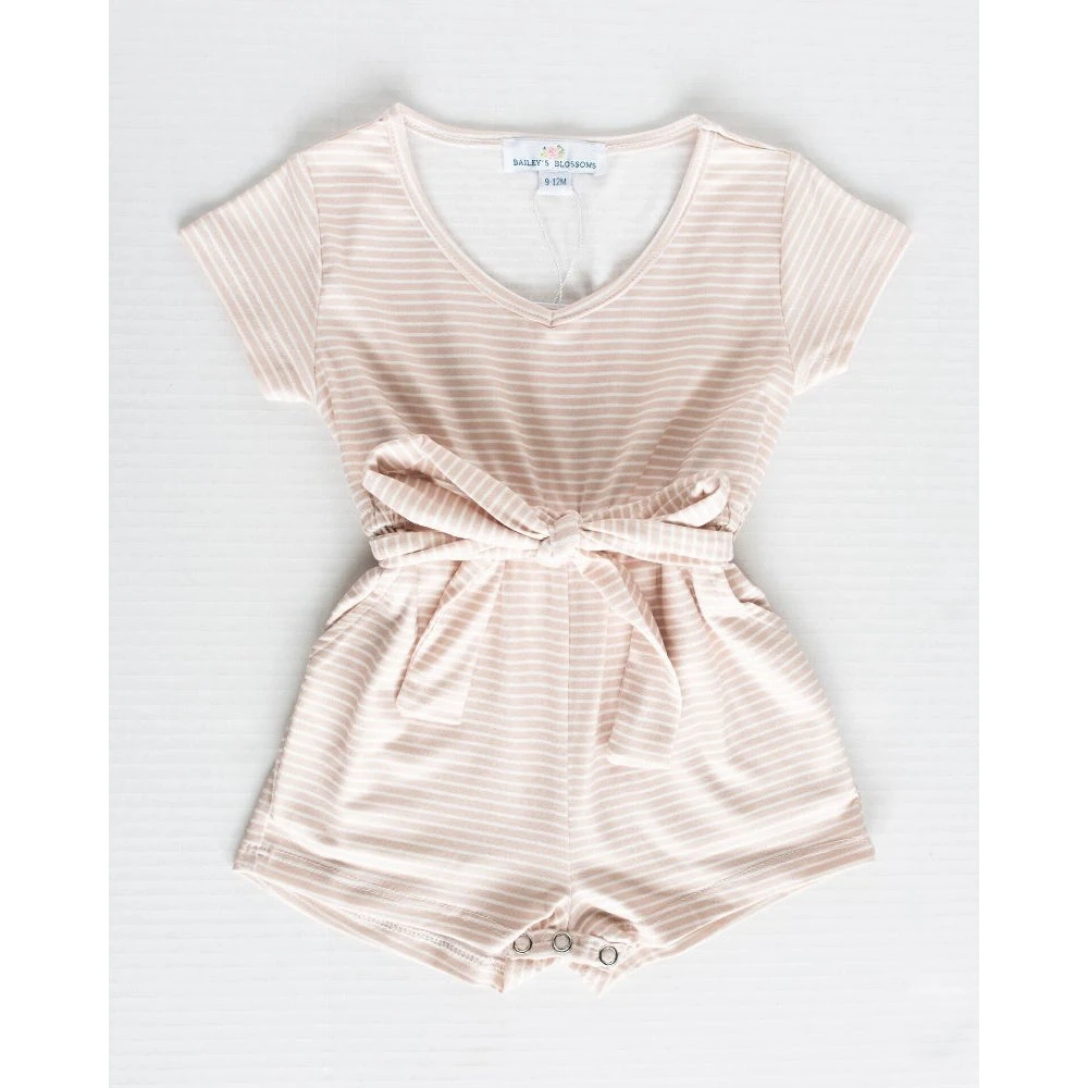 Bailey’s Blossoms Overalls + Rompers Tan + White Stripe Tie Romper