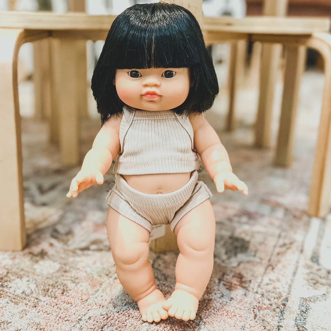 Dolls + Plushies Beige Tank Ribbed + Button Romper Minikane Clothing