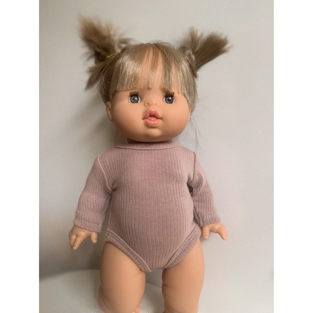 Dolls + Plushies Beige Tank Ribbed + Button Romper Minikane Clothing