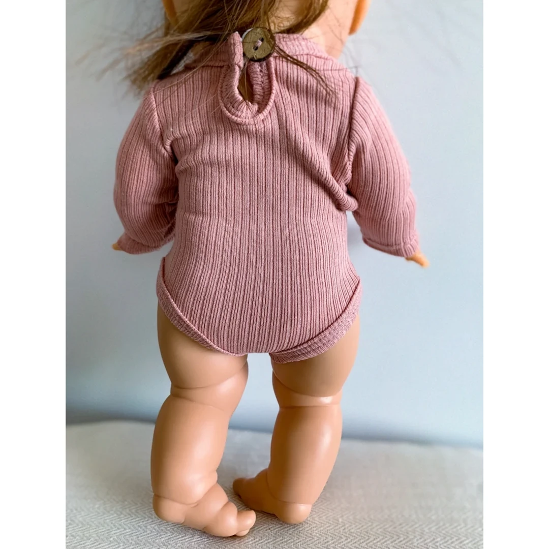 Dolls + Plushies Beige Tank Ribbed + Button Romper Minikane Clothing