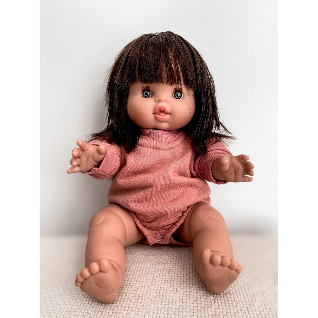Dolls + Plushies Beige Tank Ribbed + Button Romper Minikane Clothing