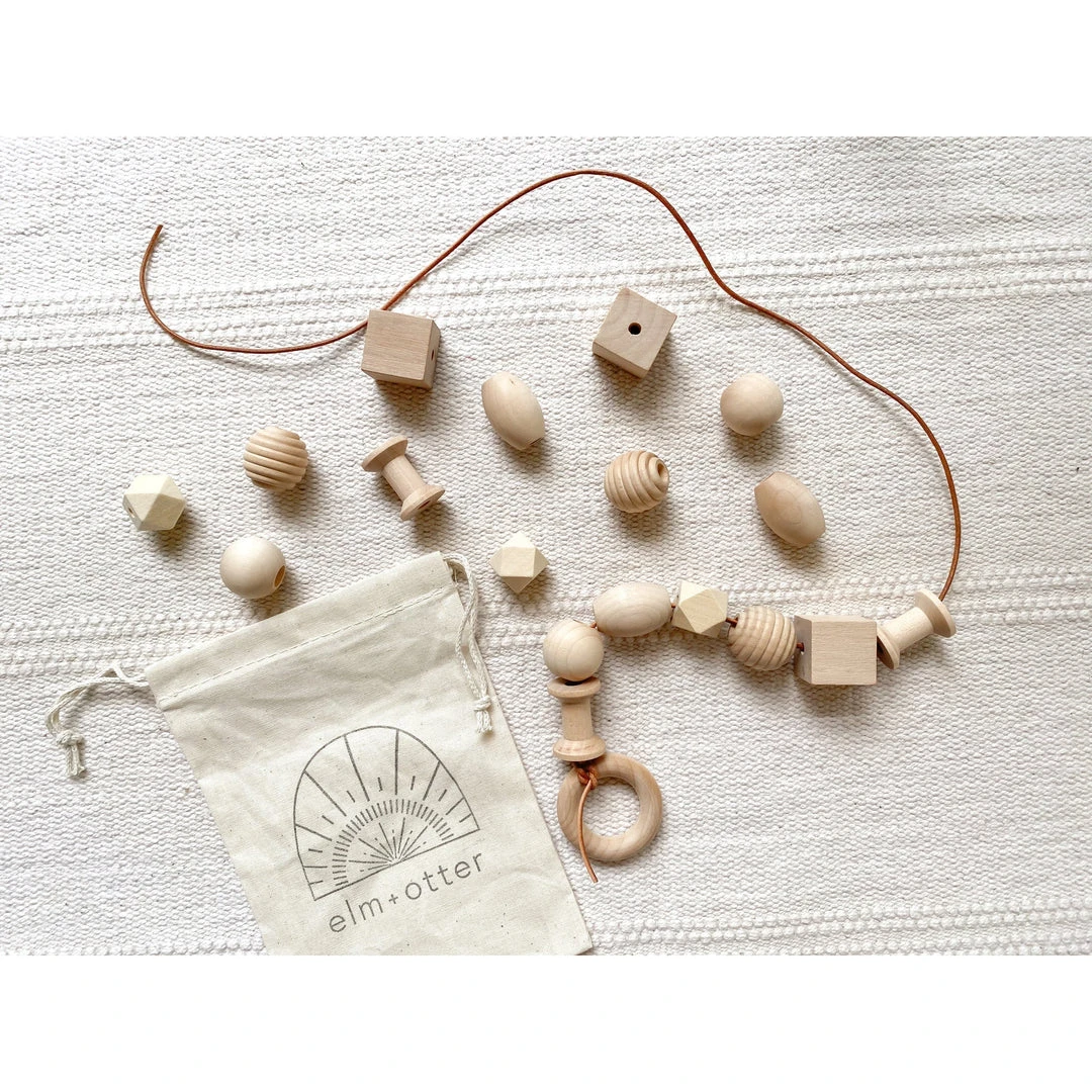 beautiful montessori inspired natural wood and leather lacing toy
