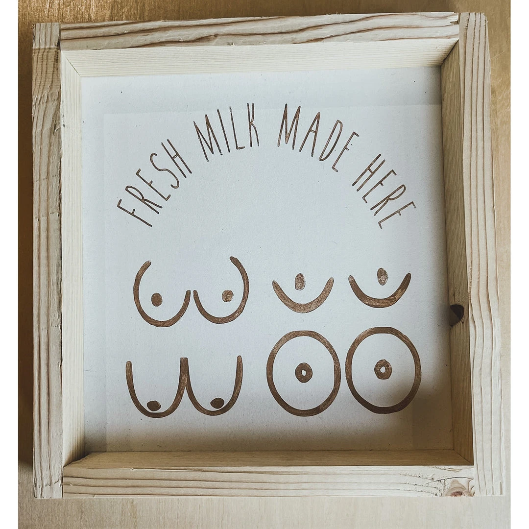 Emrose Decor Fresh Milk Made Here Brown Wooden Sign