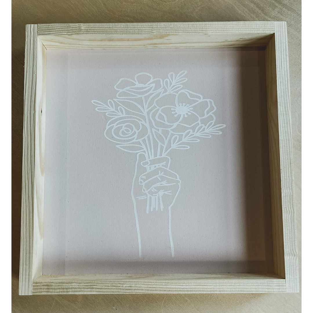 Emrose Taupe Floral Bouquet Wooden Sign Decor