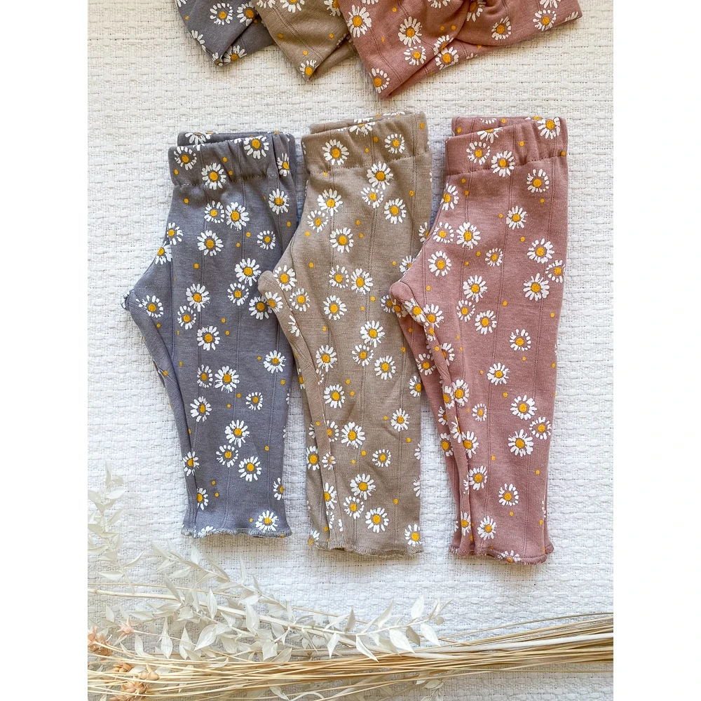 Evelina Apparel Beige Daisy Jersey Leggings Bottoms