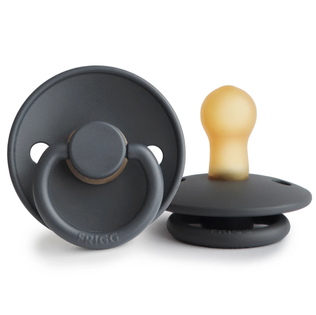 The FRIGG line of moon phase rubber pacifiers is thoughtfully designed for your baby’s comfort and inspired by the moon in motion. The outward curve keeps the pacifier off delicate skin, while air holes and a security handle ensure your baby stays safe. Within the pacifier shield, air holes reveal the eight phases of the moon in subtle detail. Available in a range of soft colors, FRIGG pacifiers make a beautiful addition to your collection of baby essentials.