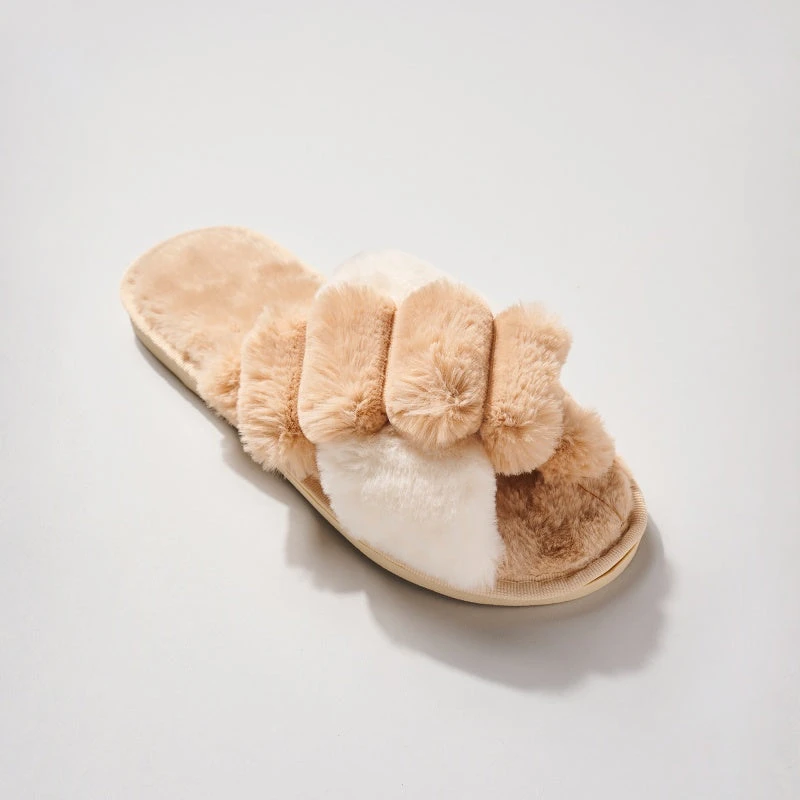 J+j Beige Faux Fur Slippers