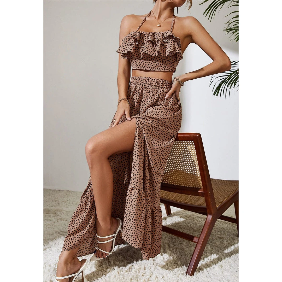 ruffle tie top + long skirt with slit