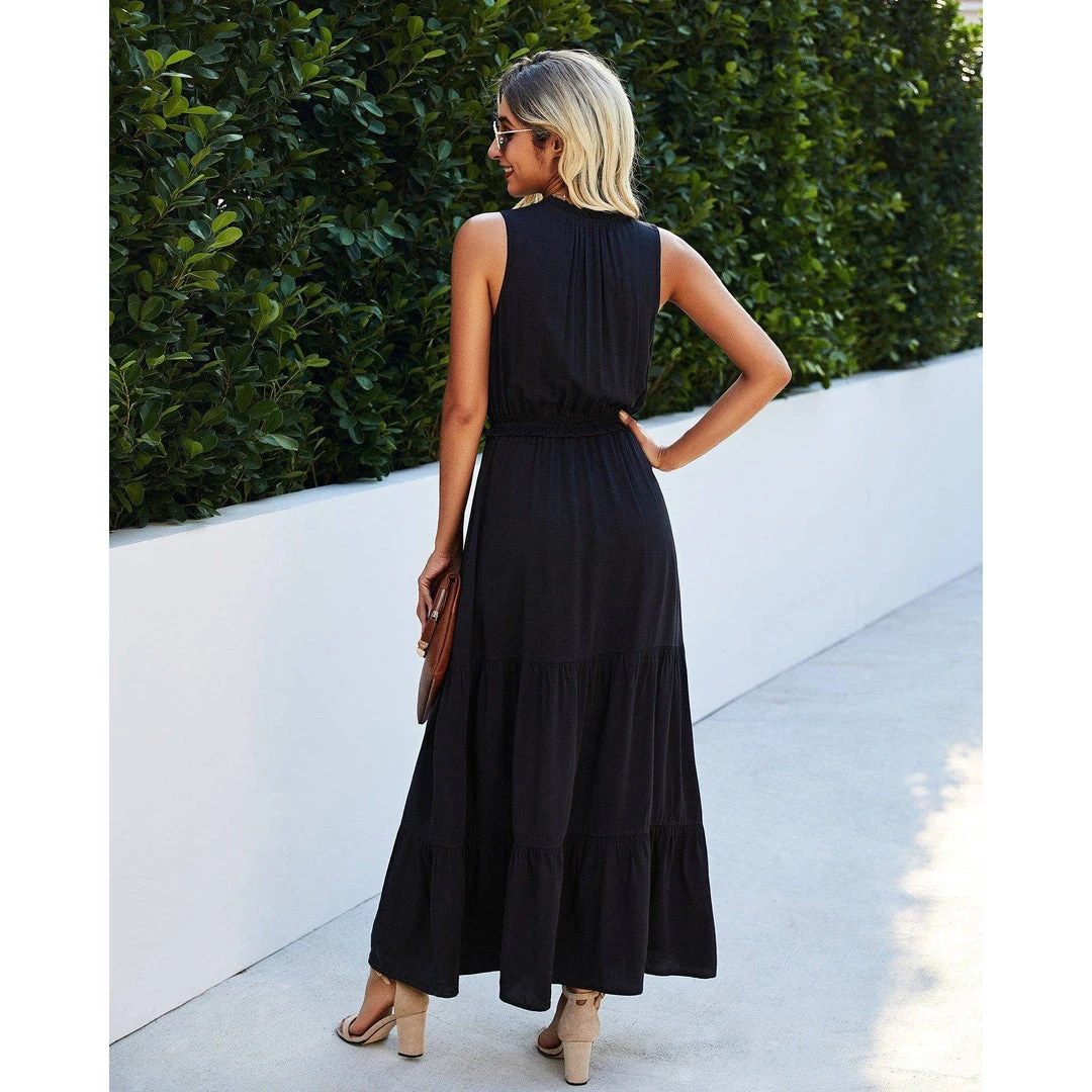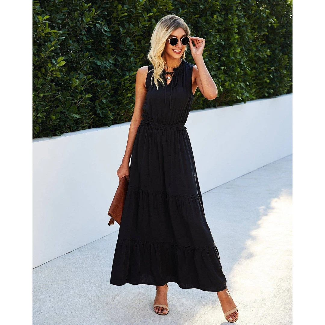 J+j Dresses Black Tie Neck Solid Maxi Dress