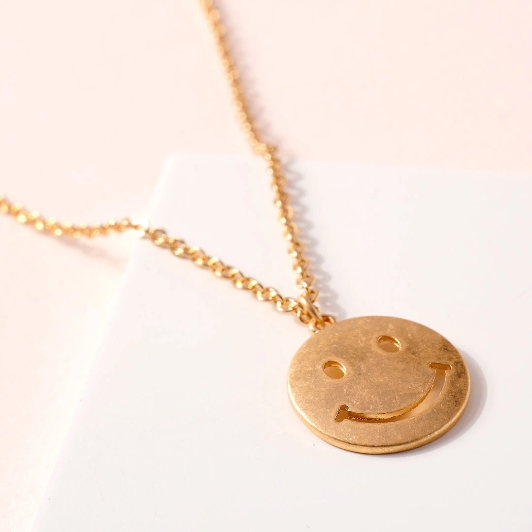 J+j Necklaces Smiley Face Round Charm Short Necklace