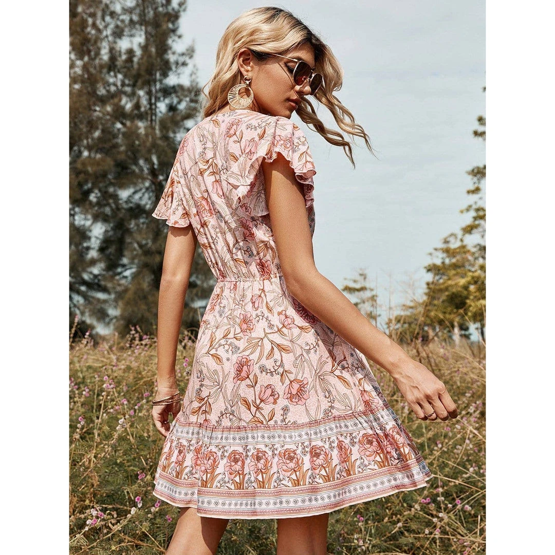 J+j Pink Butterfly Sleeve Boho Dress Dresses