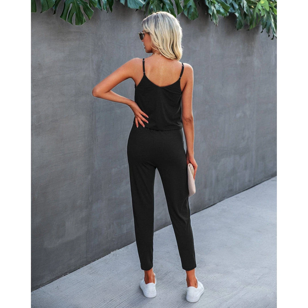 J+j Sets Black Solid Cami + Pants Set