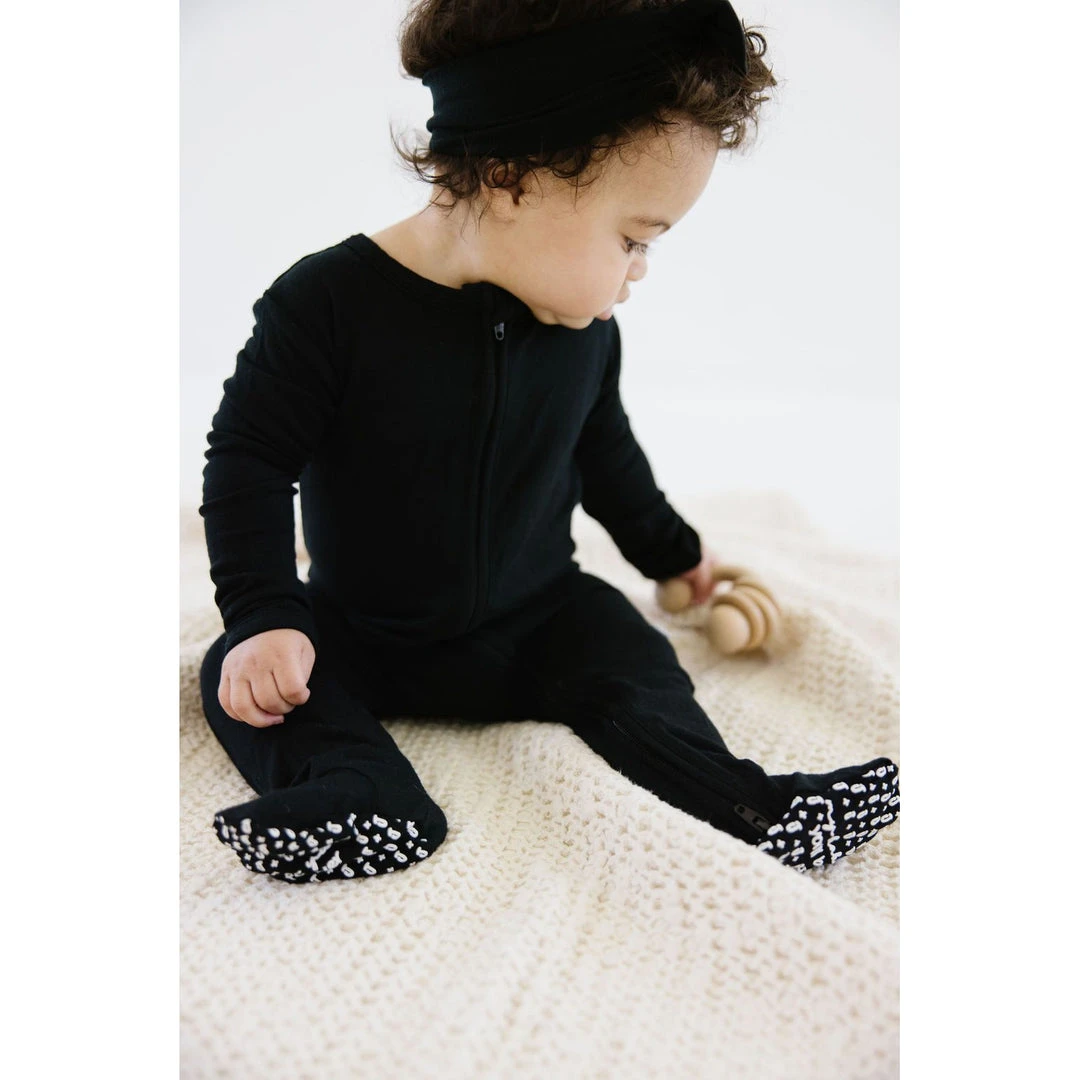 butter soft + stretchy double zipper black midnight neutral sleeper that you will want your baby to wear all day
