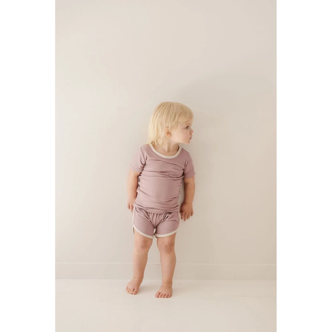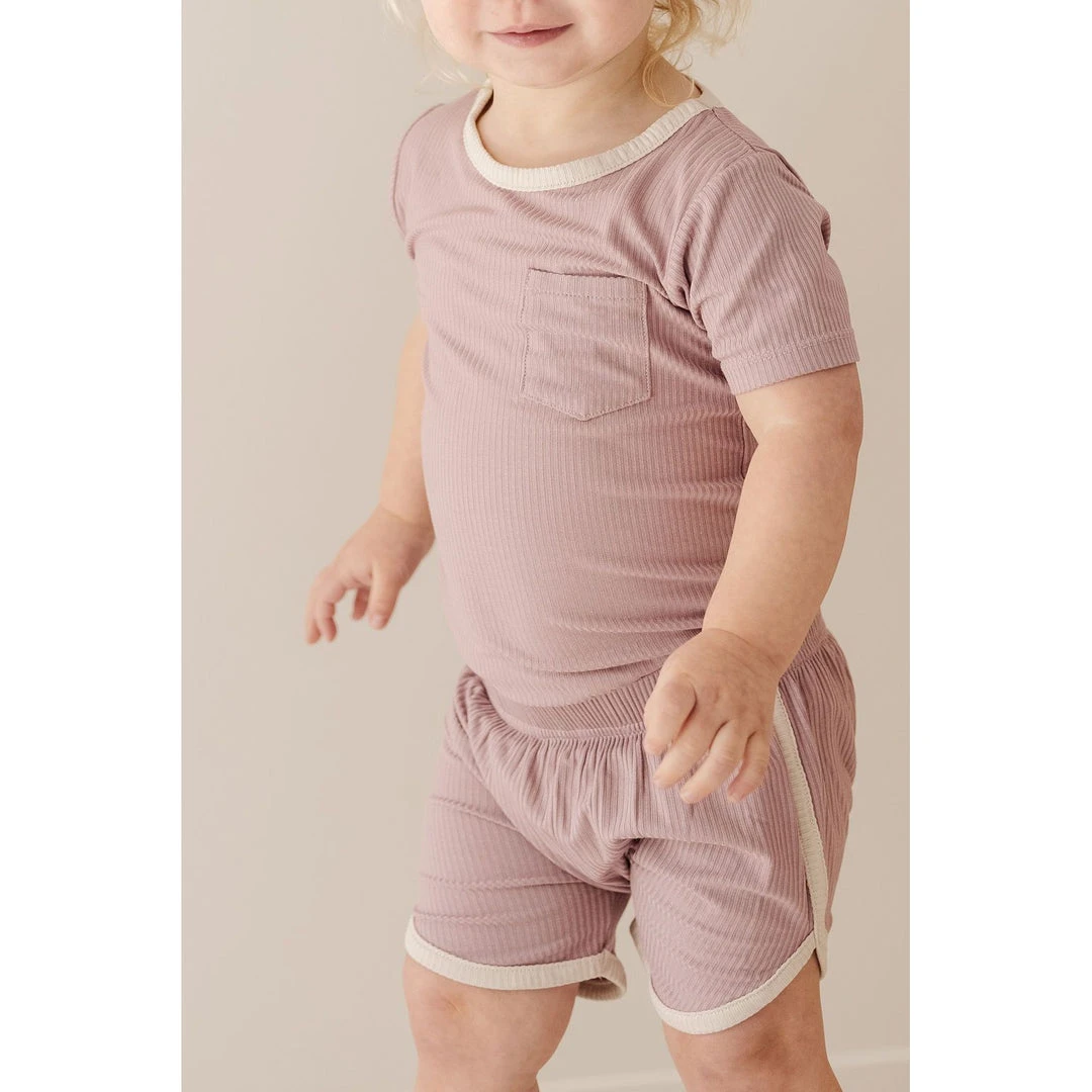 adorable light mauve + cream ribbed track shorts
