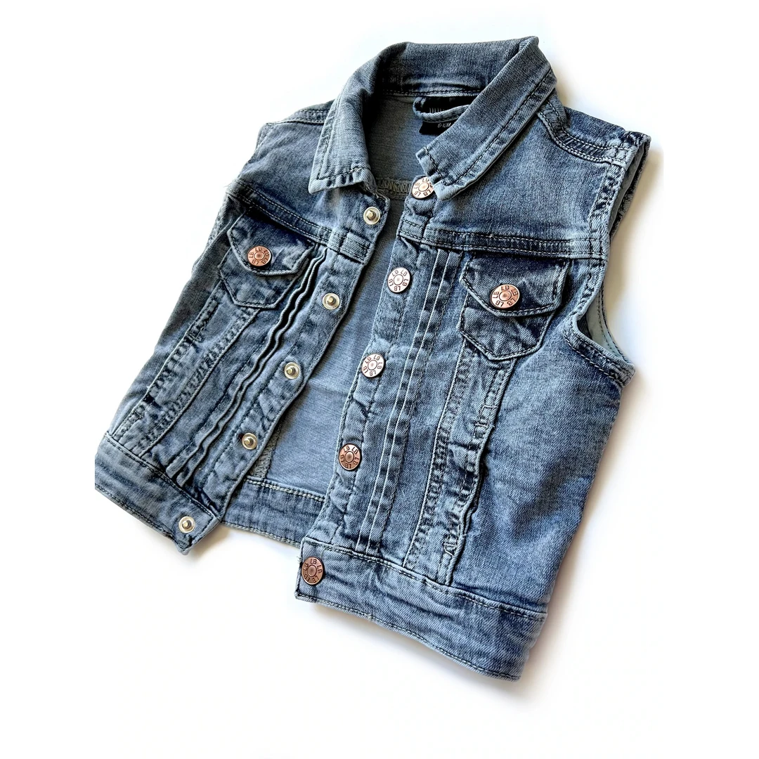 adorable one if a kind denim jacket vest you will want your babe to wear everyday