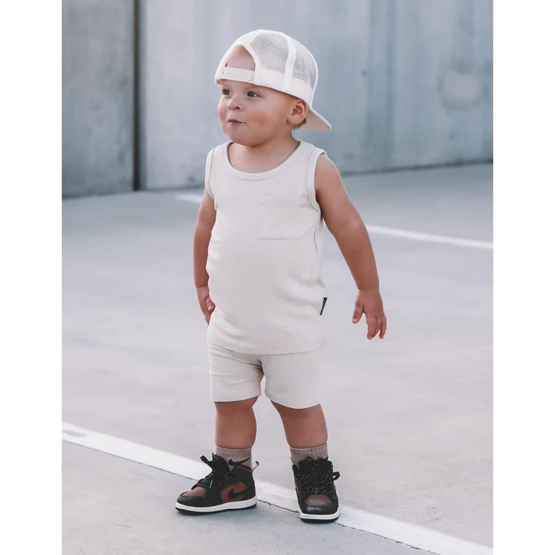 Little Bipsy Shell Ribbed Pocket Tank Top Tee
