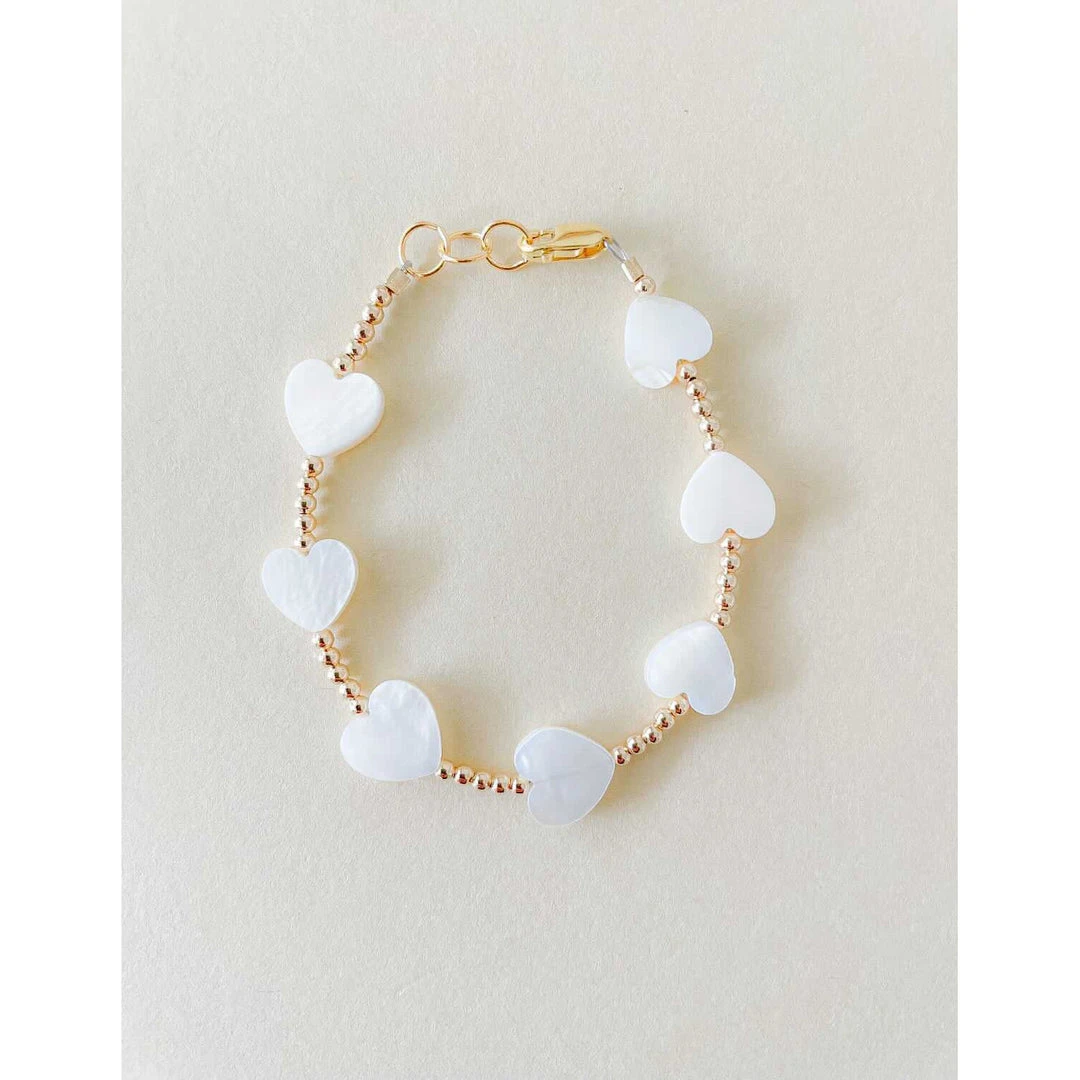 white heart beads + gold beads