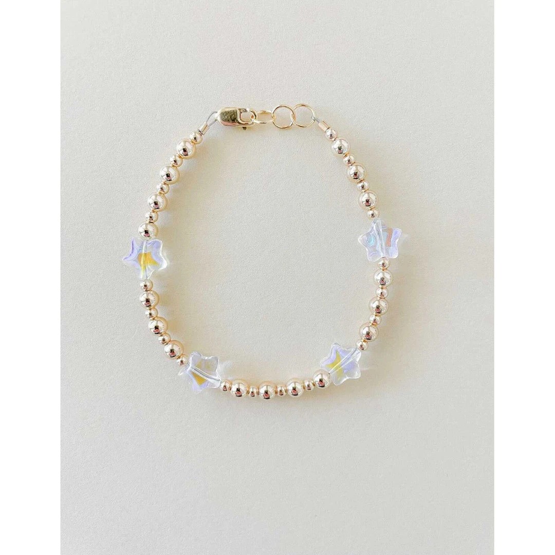 shiny clear stars mixed with gold filled beads