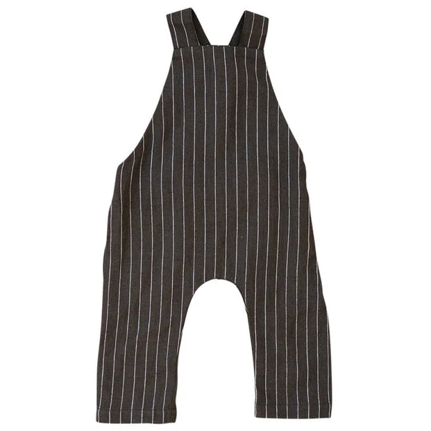 Cute and comfortable linen cotton overalls done up with wood buttons in the back. They have an extra button hole for longer wear!
