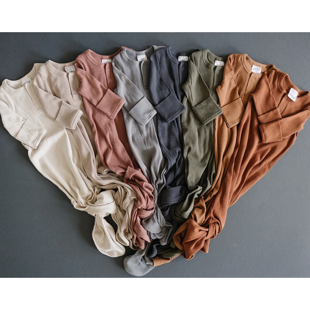 Mebie Baby Preemie + Newborn Charcoal Grey Organic Cotton Ribbed Knotted Gown