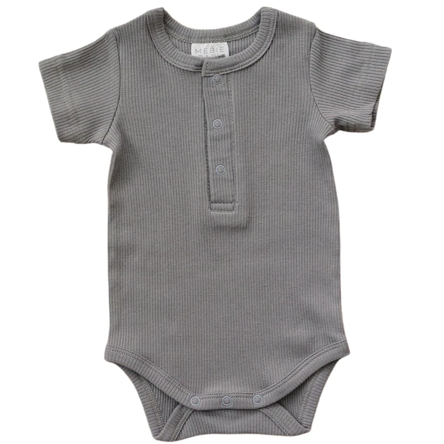 Mebie Baby Preemie + Newborn Grey Organic Cotton Ribbed Snap Onesie