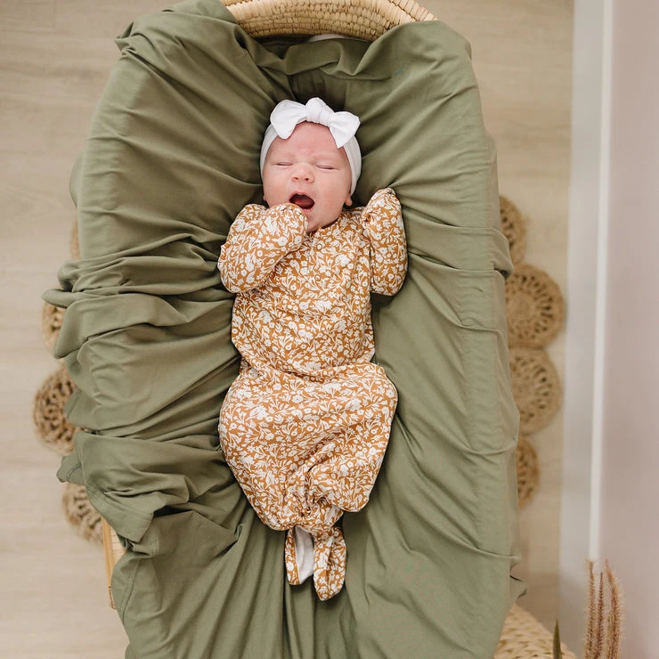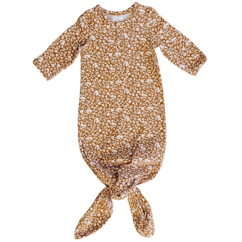 Mebie Baby Preemie + Newborn Mustard Floral Organic Cotton Knotted Gown