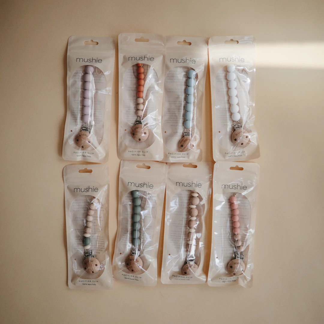 Mushie Cloudy Mauve Cleo Pacifier Clip
