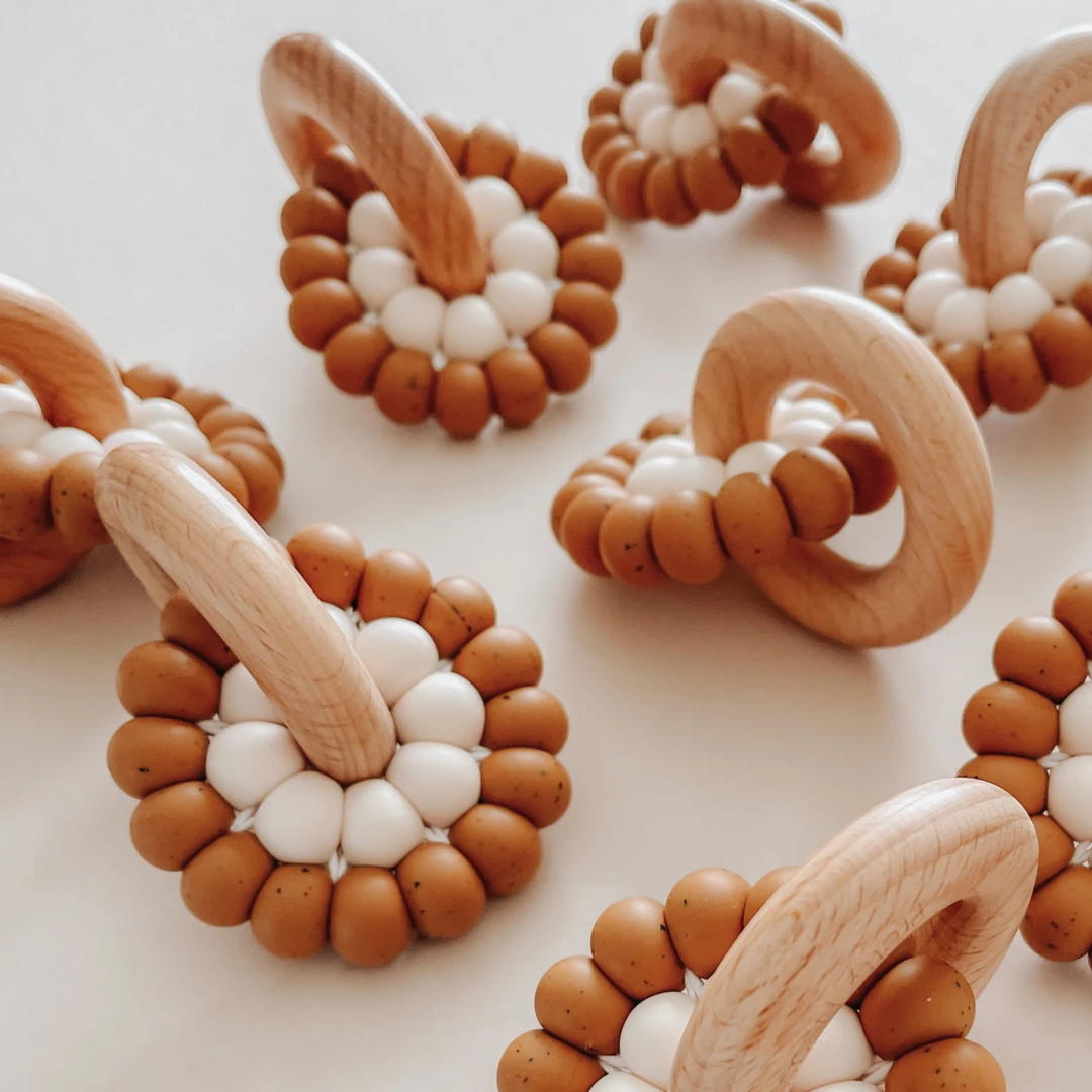 Orbit Teething Rattle are perfect in size and shape for little hands to grasp and, combined with our XL soft silicone beads and natural beechwood bead & rings, makes for the ideal teether to massage sore gums.Â